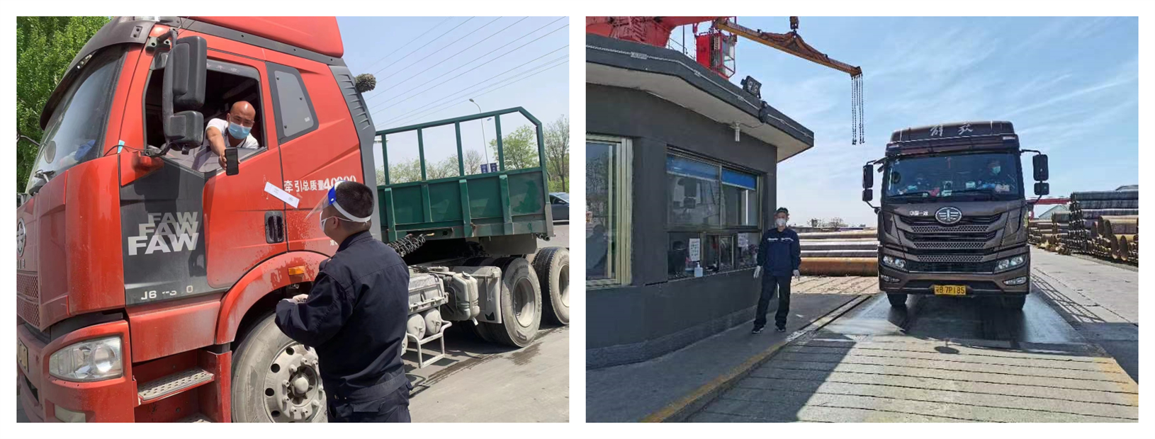 疫情防控不放松,生产发展不懈怠。复工复产后,公司抽调精干人员,成立物流运输闭环防控巡查小组,实行物流运输点对点闭环管理,确保零输入,零感染,保障公司经营平稳过渡、物流运输高效通畅。目前,公司仅开放一个出入口,门岗安排专人对车辆实施消杀,保卫人员按规定查验司乘人员及出入人员健康码、行程码、48小时核酸证明,检测体温,检查封条是否完好,并进行车辆信息登记。同时提醒并要求司乘人员全程不得下车,切实做到闭环管理。